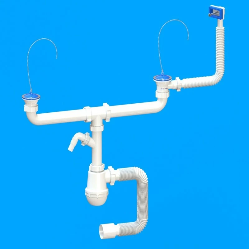 Сифон «Лотос-Мойка» нержавеющий выпуск 1 1/2 " ДЛЯ ДВОЙНЫХ МОЕК С